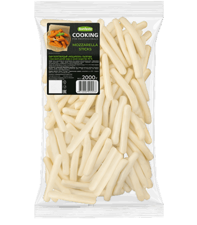 Сыр полутвёрдый нарезанный Моцарелла Sticks Bonfesto Cooking – самый известный сыр группы Паста Филата – наилучшим образом раскрывает свои вкусовые качества