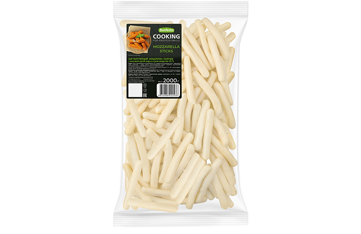 Сыр полутвёрдый нарезанный Моцарелла Sticks Bonfesto Cooking – самый известный сыр группы Паста Филата – наилучшим образом раскрывает свои вкусовые качества под воздействием температуры. Характеризуется пониженной влажностью и уменьшенной массовой долей жира в сухом веществе 40 %.