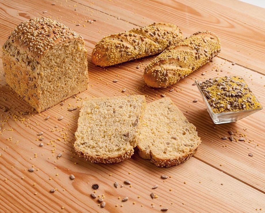 - Хлеб, выпеченный со смесью «Пуравита Мен», имеет кремовый мякиш, во вкусе и аромате преобладают ореховые нотки.