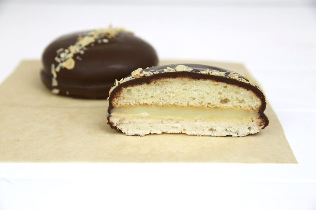 Готовый полуфабрикат обладает приятным вкусом и хрустящей структурой, может быть использован в качестве основы или дополнения для создания новых видов кондитерских изделий (печенье, маффины, коржи для тортов, а также бюджетных изделий на тему печенья «Макарон»)