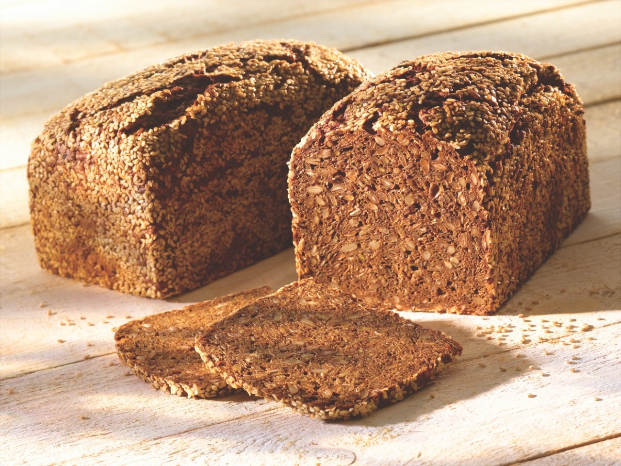 Смесью «Таленто 4 злака», кунжутом, маком, семенами подсолнечника, льна, мукой ржаной и др. |
