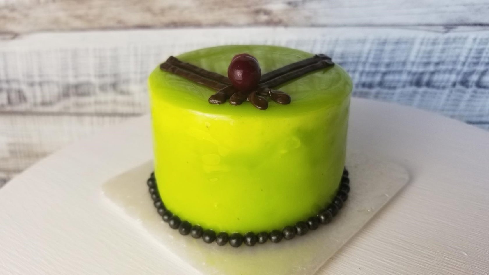 Муссовый мини-торт «Киви» на шоколадном бисквите «Миранда Шоколад» и муссом на основе пасты «Киви» на «ШефДекор»