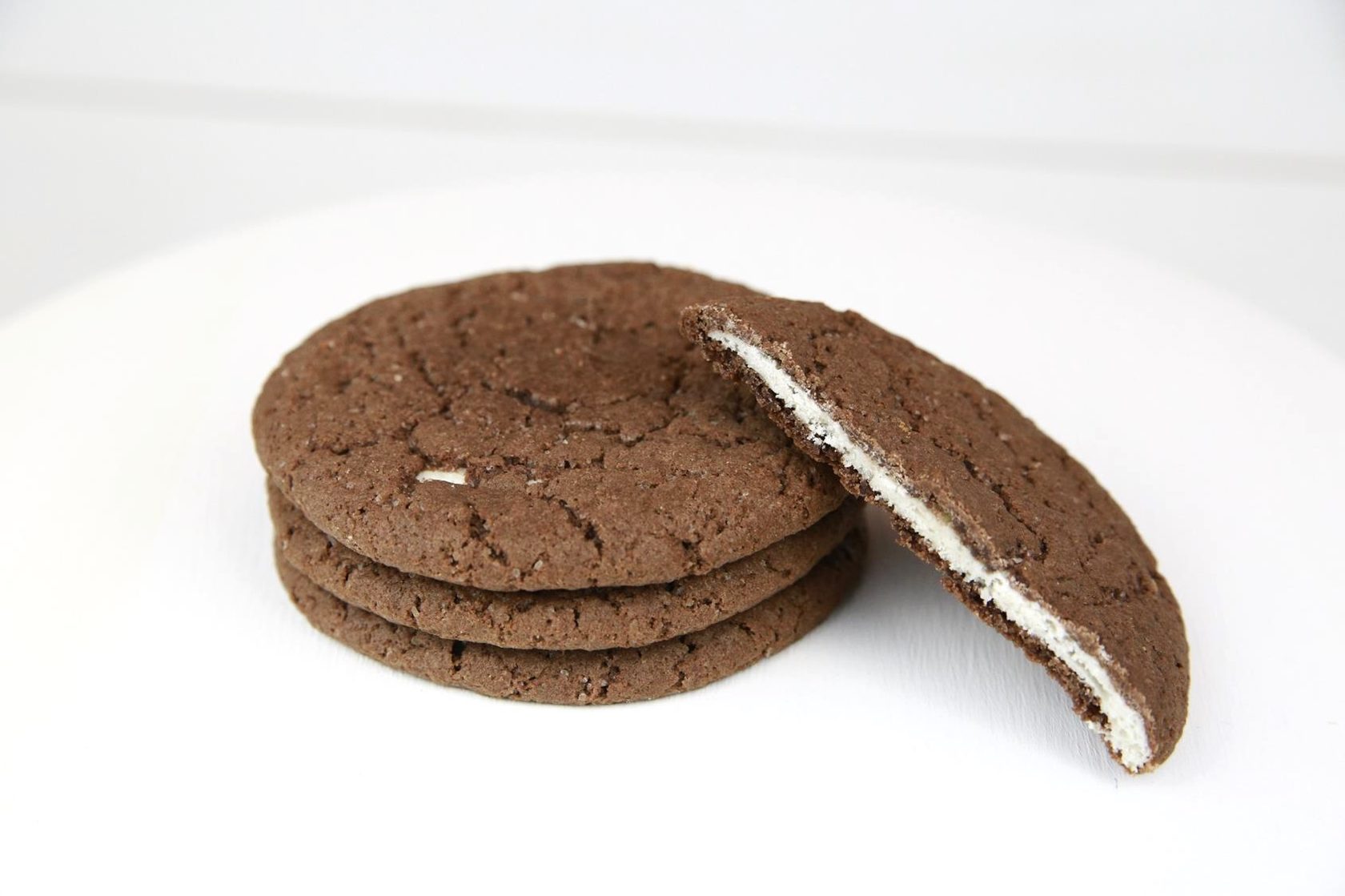 Оригинальное изделие, сочетающее 2 структуры: сдобного печенья в американском стиле и начинки из воздушного безе с тянущейся структурой. Рецептура создана для для отсадочных машин экструзионного типа («Rheon», «Anko» и т.п).