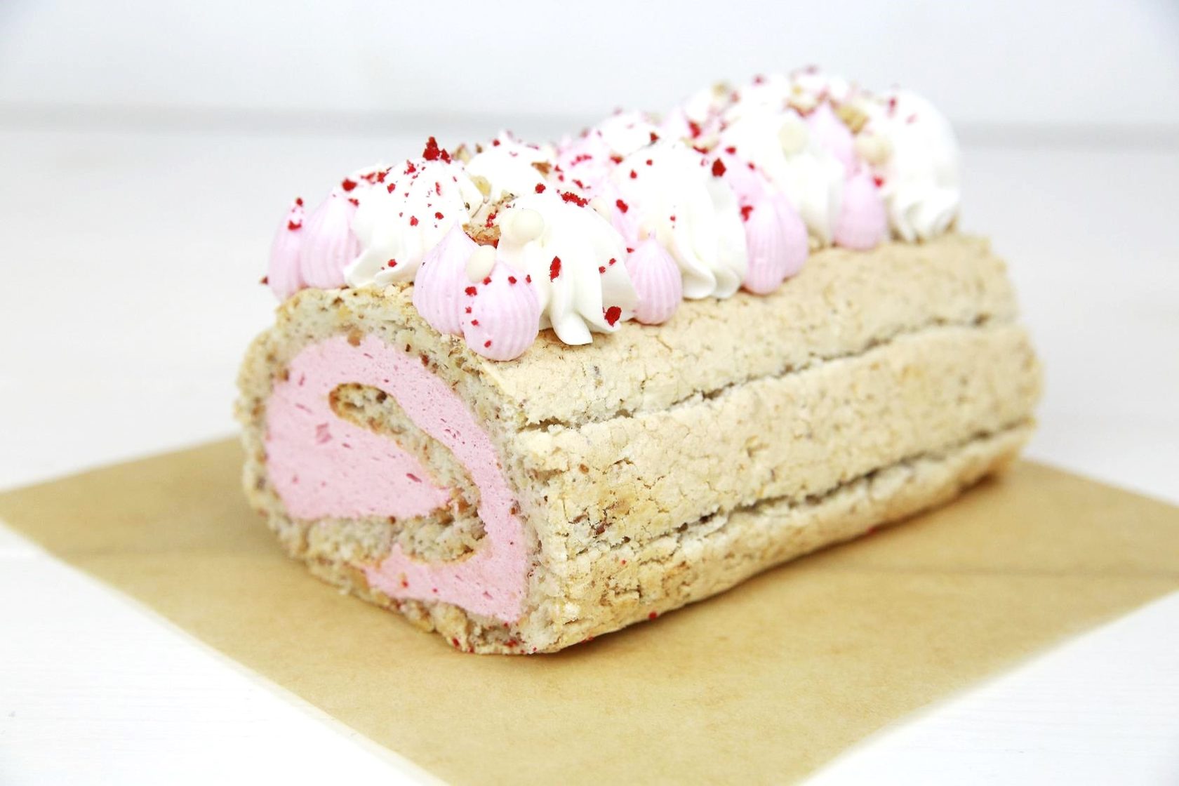 Оригинальная подача кремовых изделий, в которой сочетается популярный белковый рулет и легкий суфлеподобный вишневый крем.